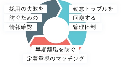 結果として、派遣導入で企業が抱える採用ミスマッチやすぐ辞めてしまうといった最大のリスクを大幅に下げることができています。